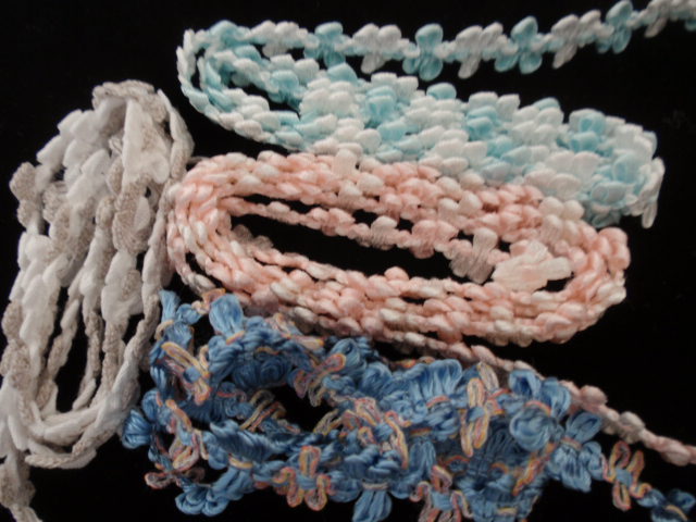 Can’t you just see these lovely pastel trims around a pretty little “Spring” stitching. I will have to search for just the right pattern to go with my trims! Usually it is just the other way around!