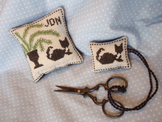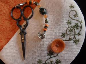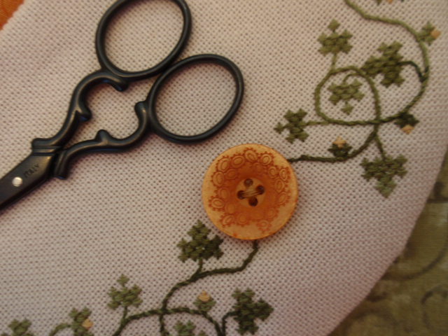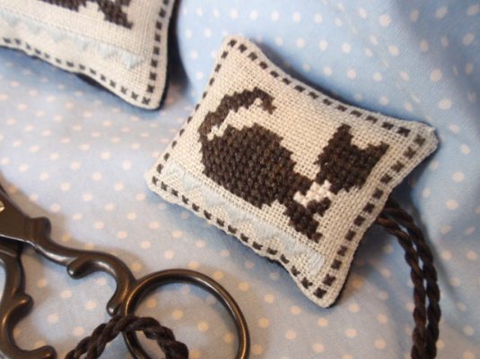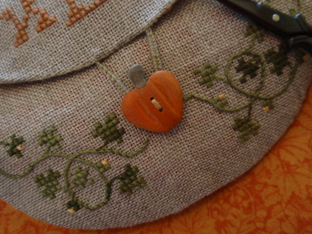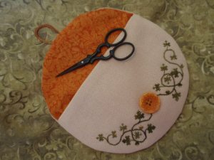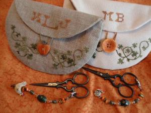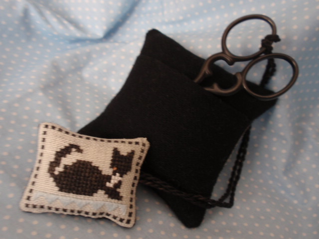 The wonderful little black scissors are Italian made and very sharp. I adore these scissors and have bought them as gifts for friends several times. You can find them here at Anitas Little Stitches. Because they are so sharp, I created a pocket on the back to hold the scissors when they are not in use. It was such fun to make.