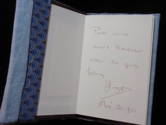 If you check my post of May 8th you will see a couple of gifts I received from my friend Maggy in an exchange. I received another gift from her for our exchange. It was really only supposed to be just one small item…but she made me not just those first two items, but another one now as well..!! I love this small book cover she did. I love sashiko stitching and hers is so tiny and exquisite. The pale blue fabric is lovely. And the fabric inside that lines the sashiko has the same clam shell motif….it’s perfect!!! The book inside has blank pages. This is just the kind of book I like to carry in my purse to jot down spontaneous notes when I am out. Thank you SO much Maggy.