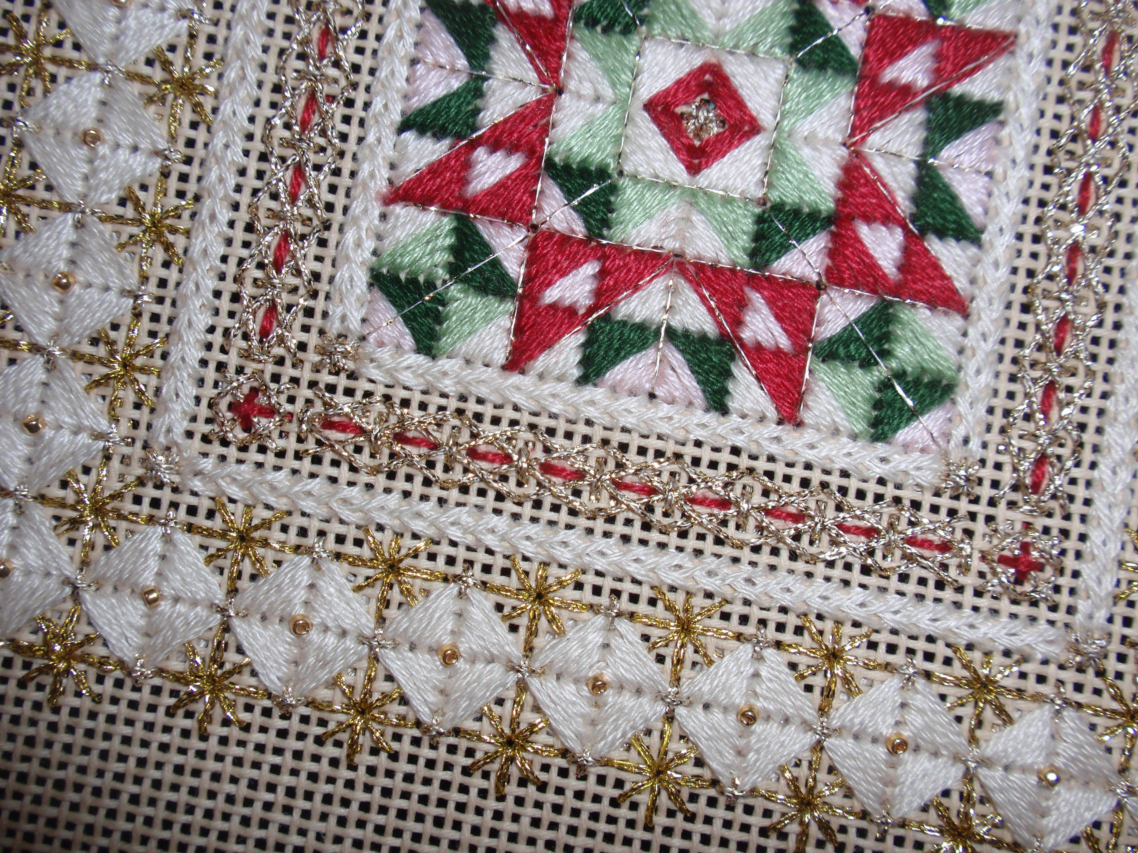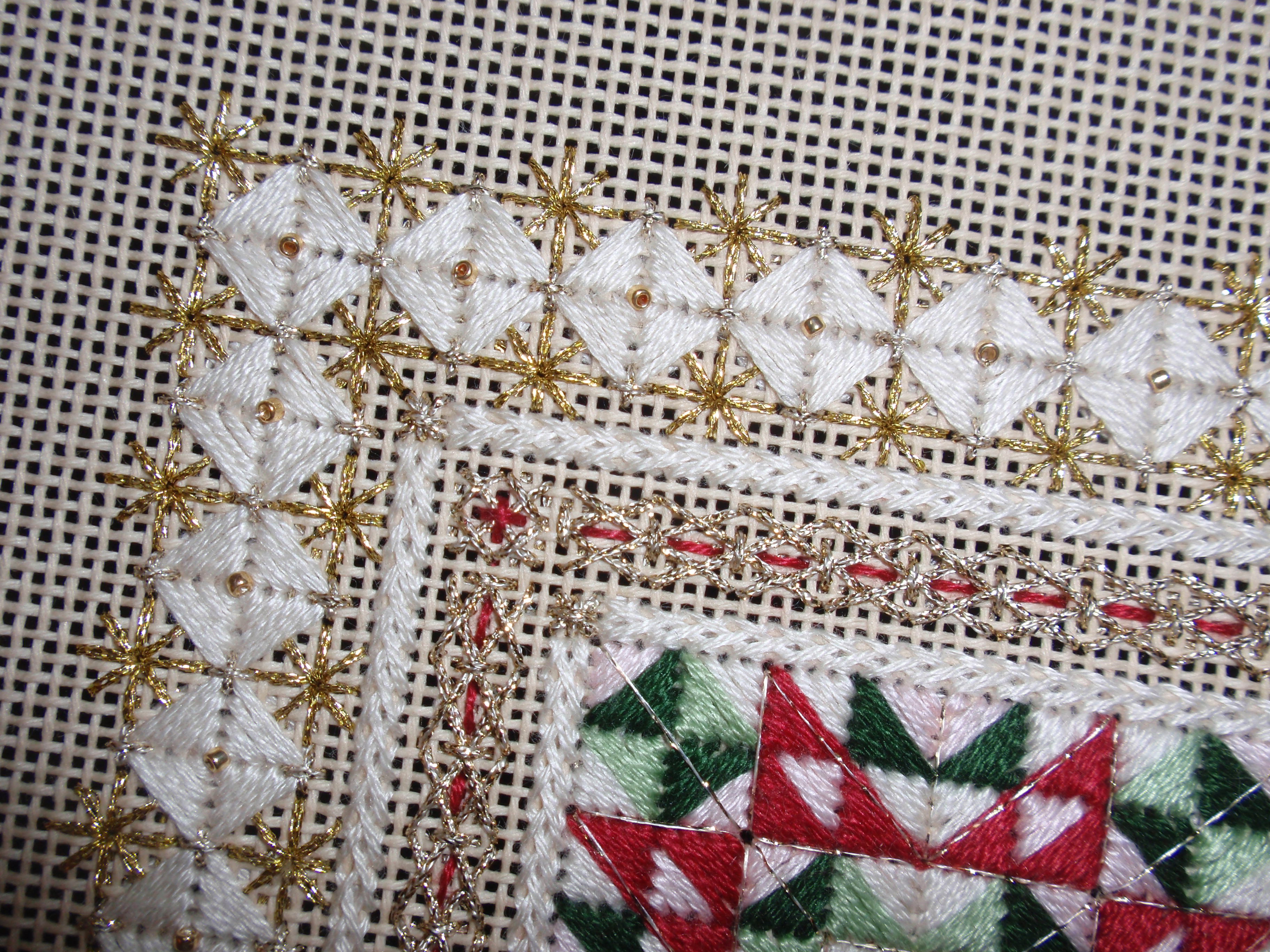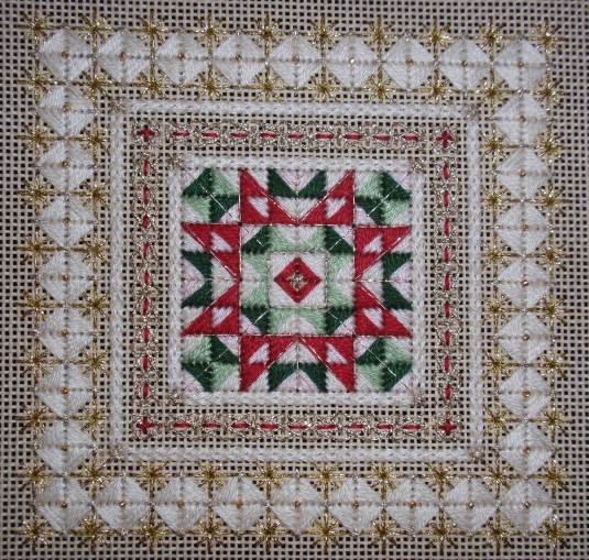 A few weeks ago I did another patriotic small called Itty Bitty America by Twisted Threads. It was done on 25ct. Dublin Linen over one thread using the called for colors. The cording was made by me using three skeins of the same red/white/blue flosses. That was a real trick trying to make cording using three colors!