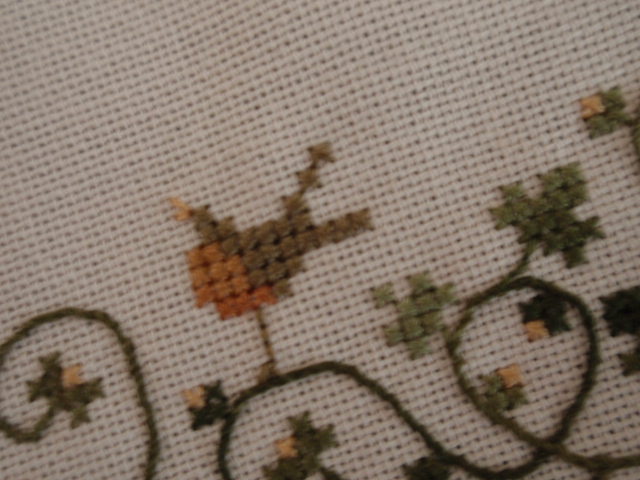 Also in progress is another stitching I have been working on for some time. It is a gift for a special friend and I can’t show the whole thing until she has received it. Here is a sneak peak. It needs to be in the mail VERY SOON!!!