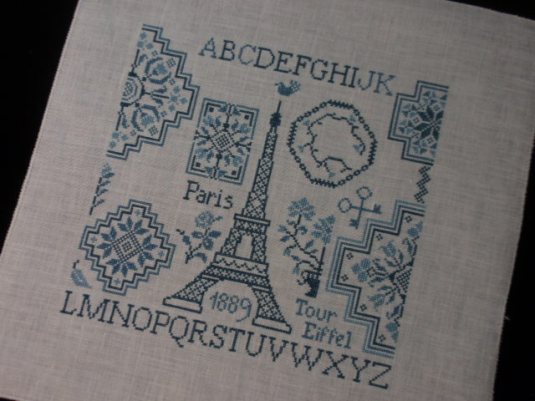 Here is my Eiffel Tower from Jardin Prive. I did change a couple of the motifs…the major one being adding my “bee.” I also changed a few other items. Now I just need a frame.