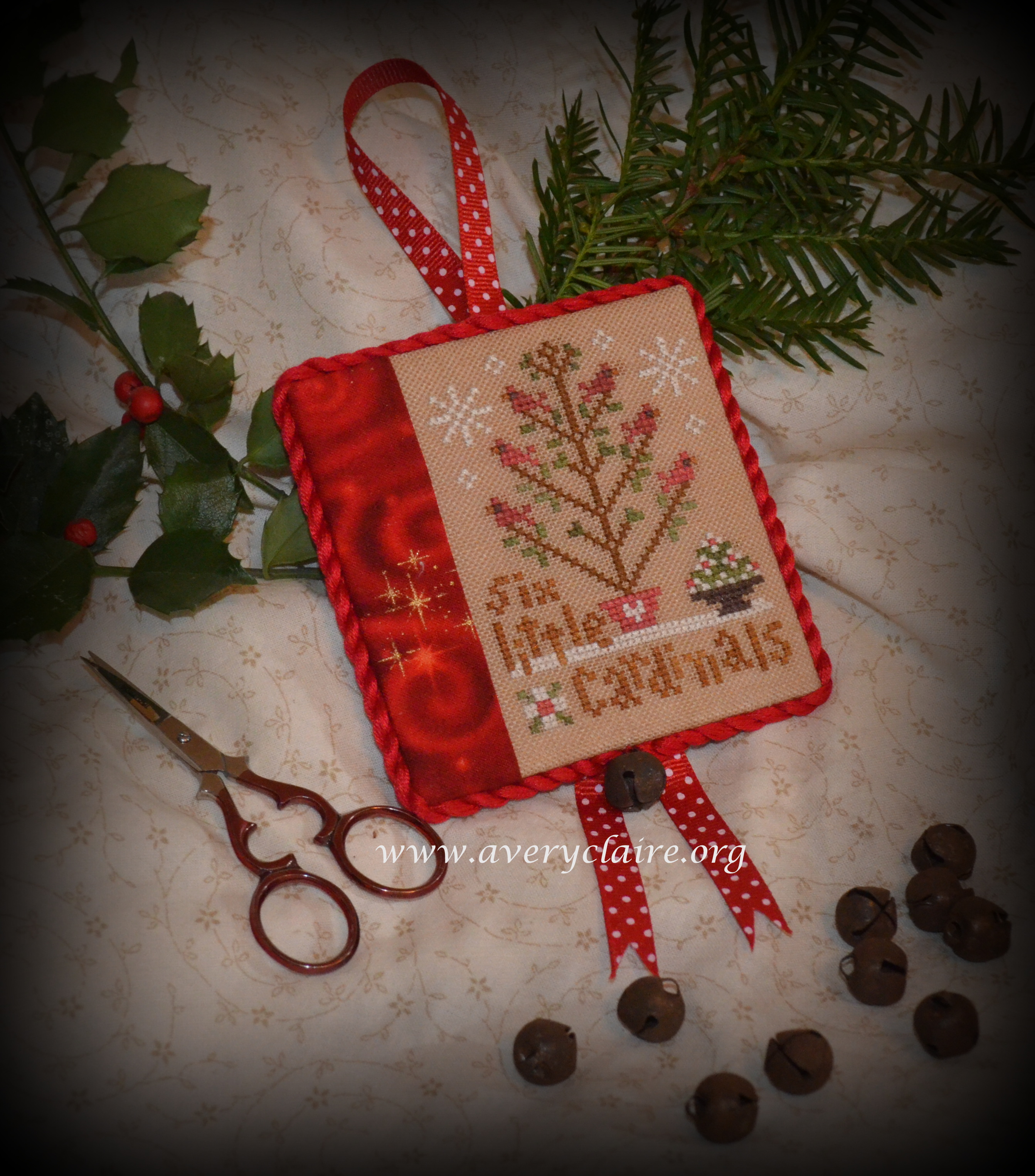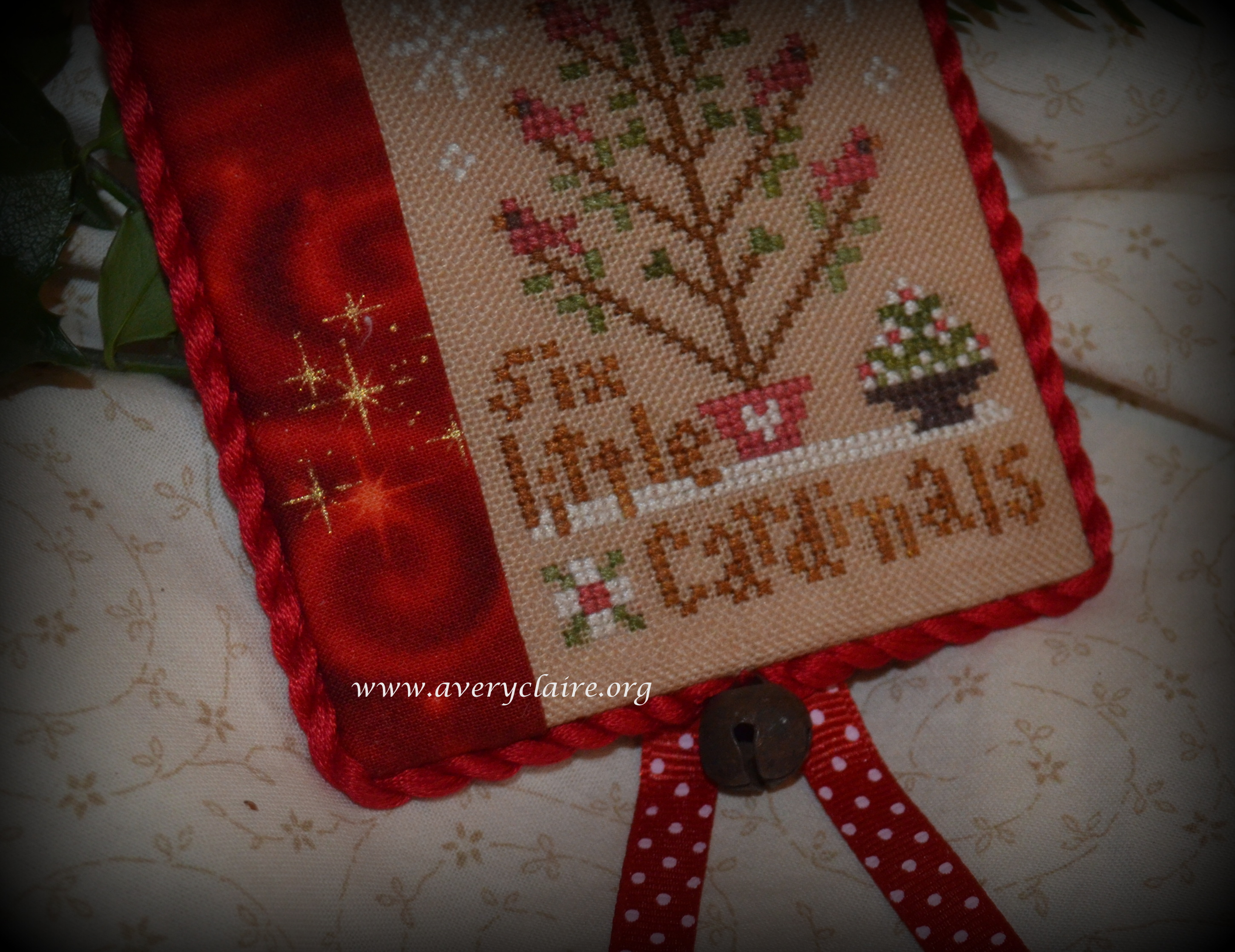 C.J. lovingly stitched Six Little Cardinals and some pretty red fabric with golden stars was added:
