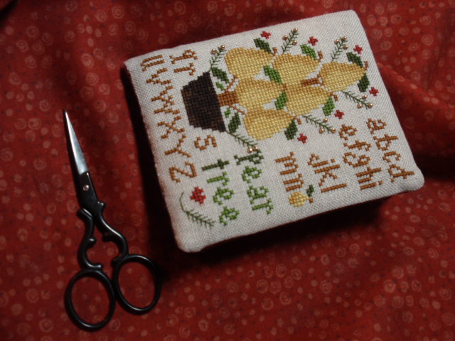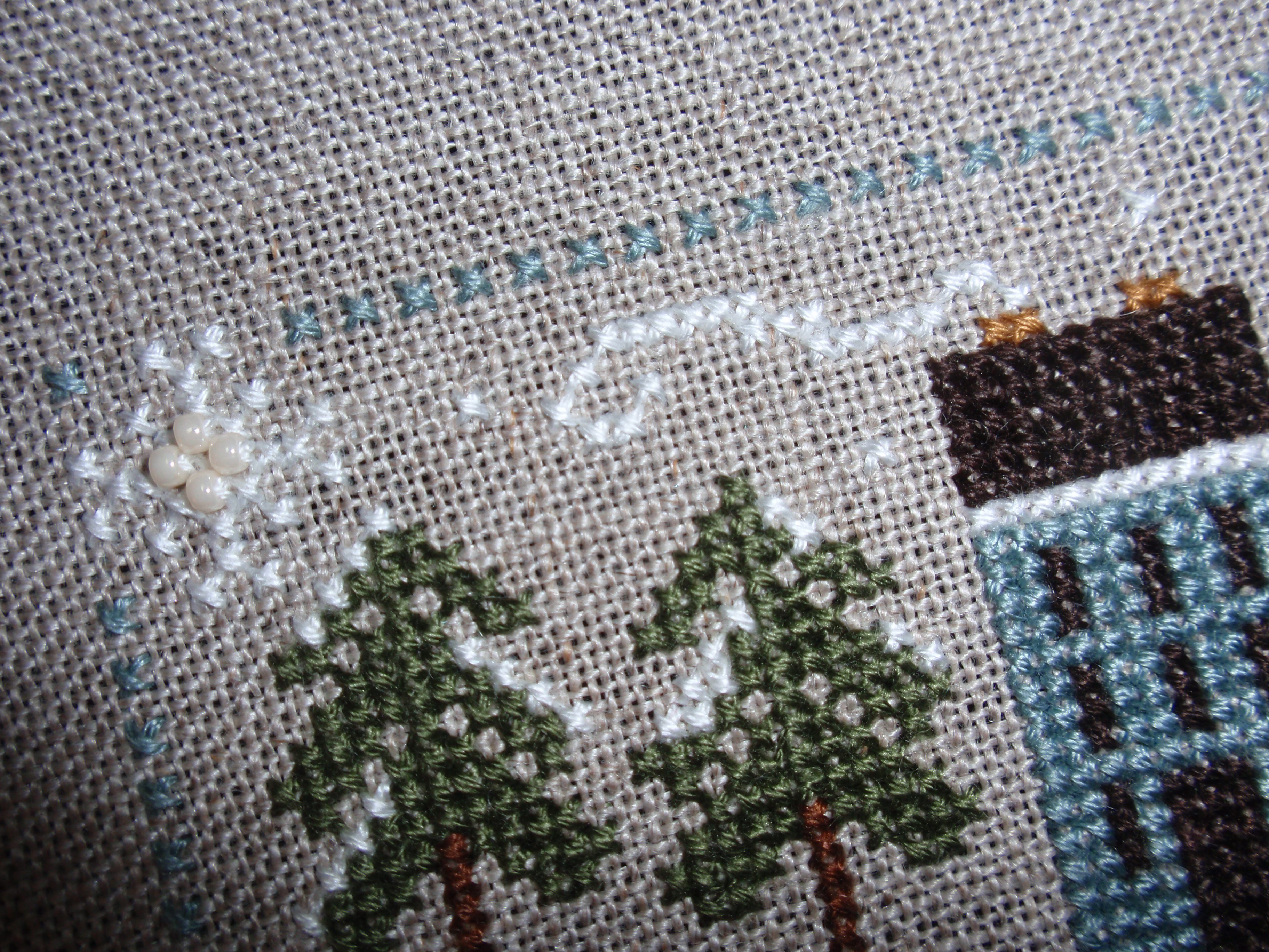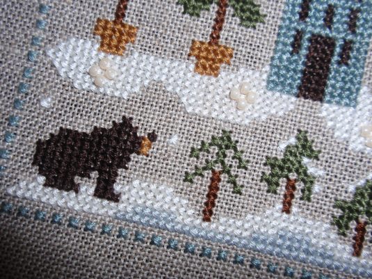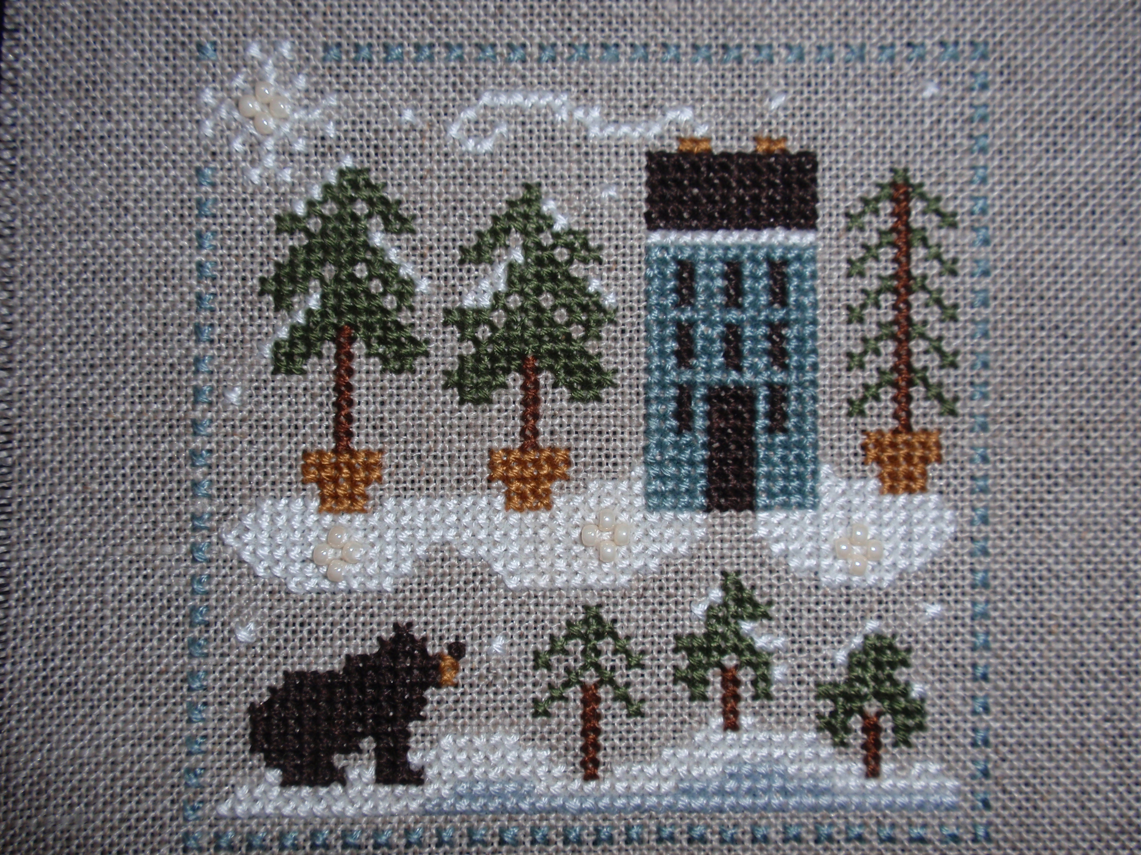 Here are a few photos of the 4th LHN ornament in the series. I have done the “finishing” on 1 and 2…but 3 and 4 are still waiting for the “finishing.” I already have 5 and 6 in the series waiting to be stitched….and number seven is coming out on May 25th!!!! Will I EVER get caught up? Maybe before Christmas? This is #4 called Snowy Pines. You can see them all or purchase one at Anita’s Little Stitches. I really like the colors and motifs in this one.