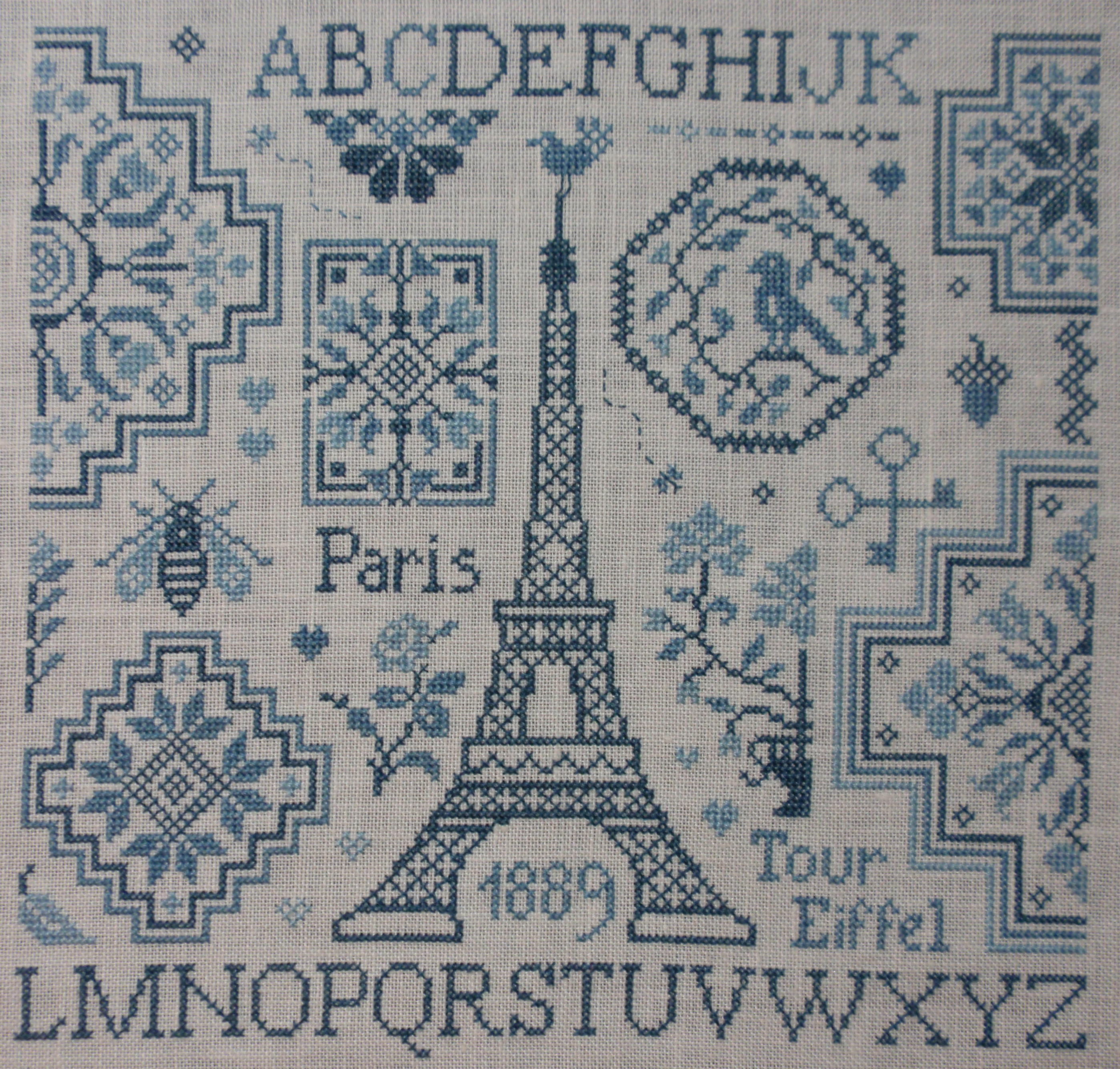 Here is my Eiffel Tower from Jardin Prive. I did change a couple of the motifs…the major one being adding my “bee.” I also changed a few other items. Now I just need a frame.