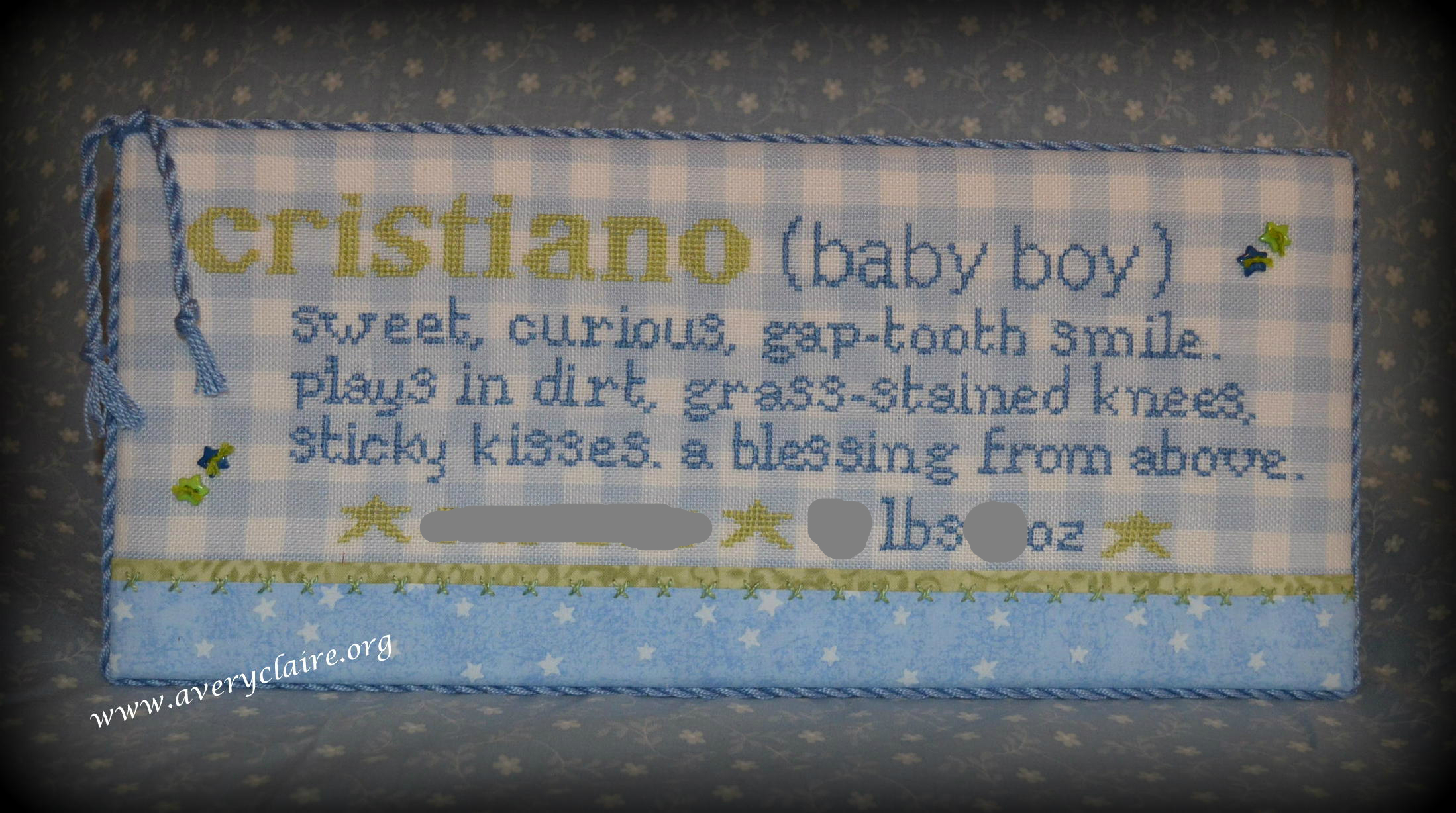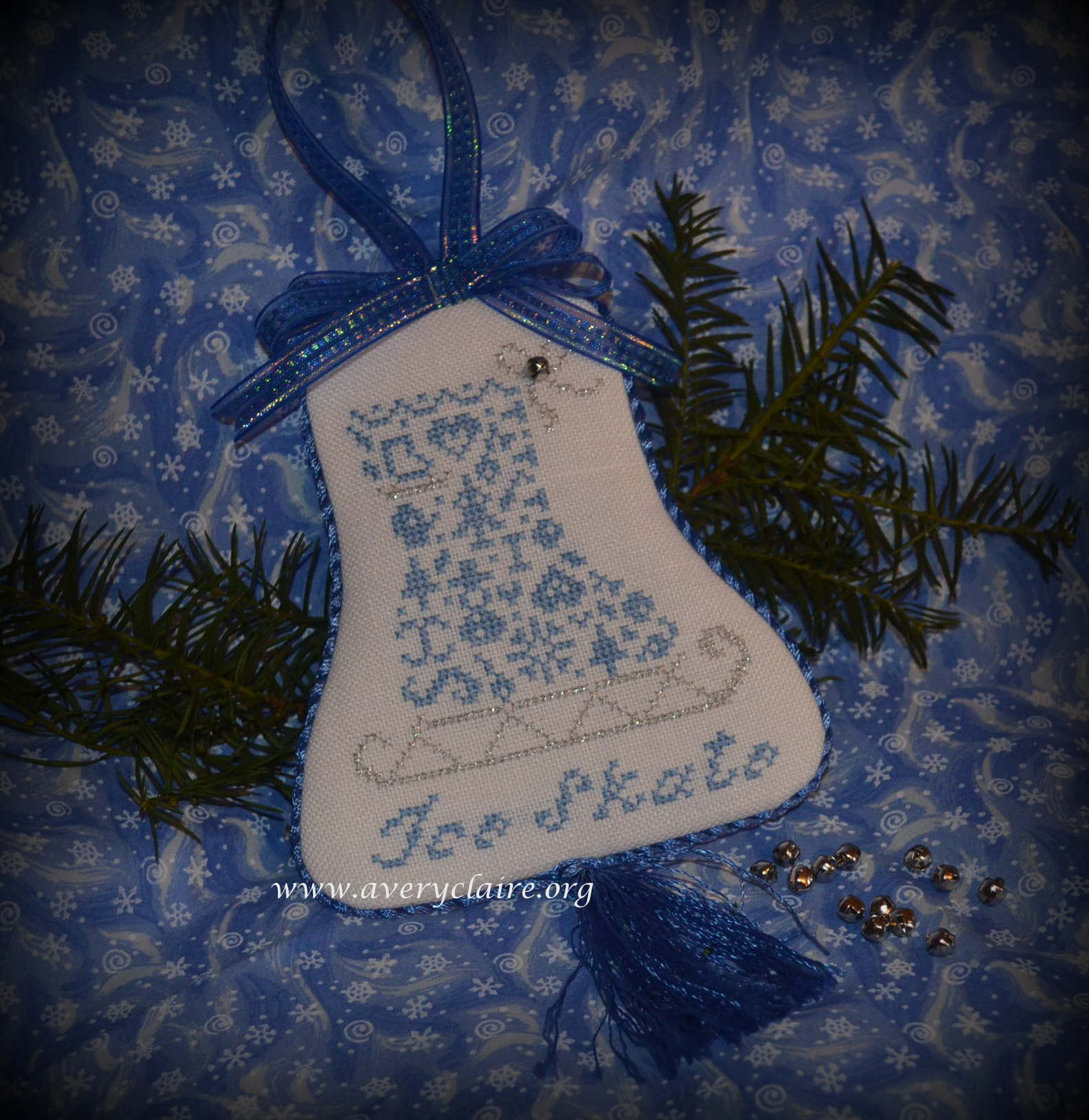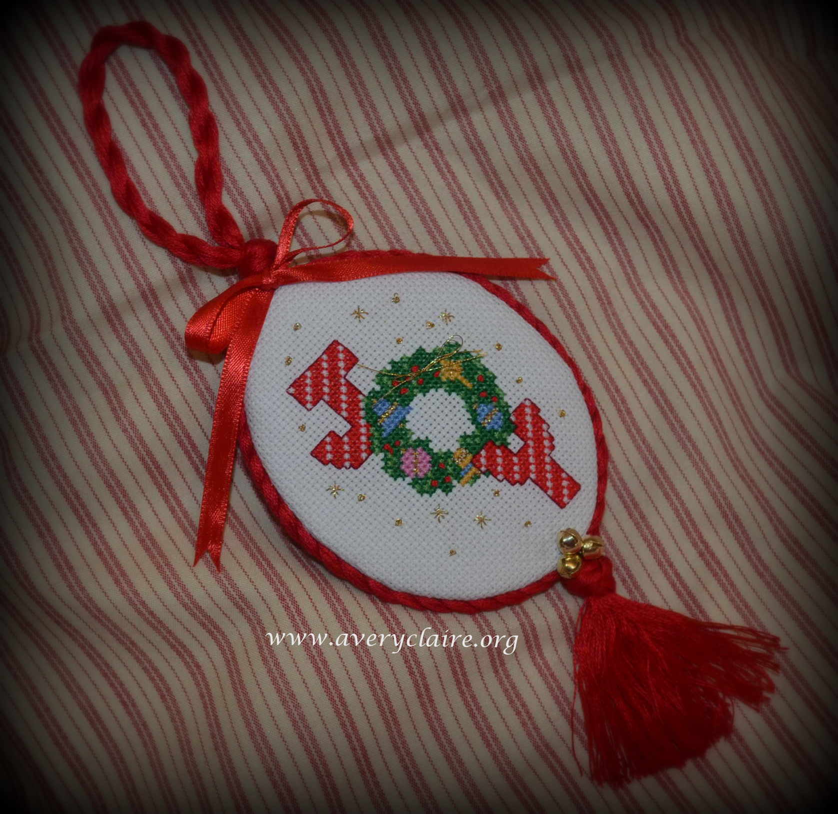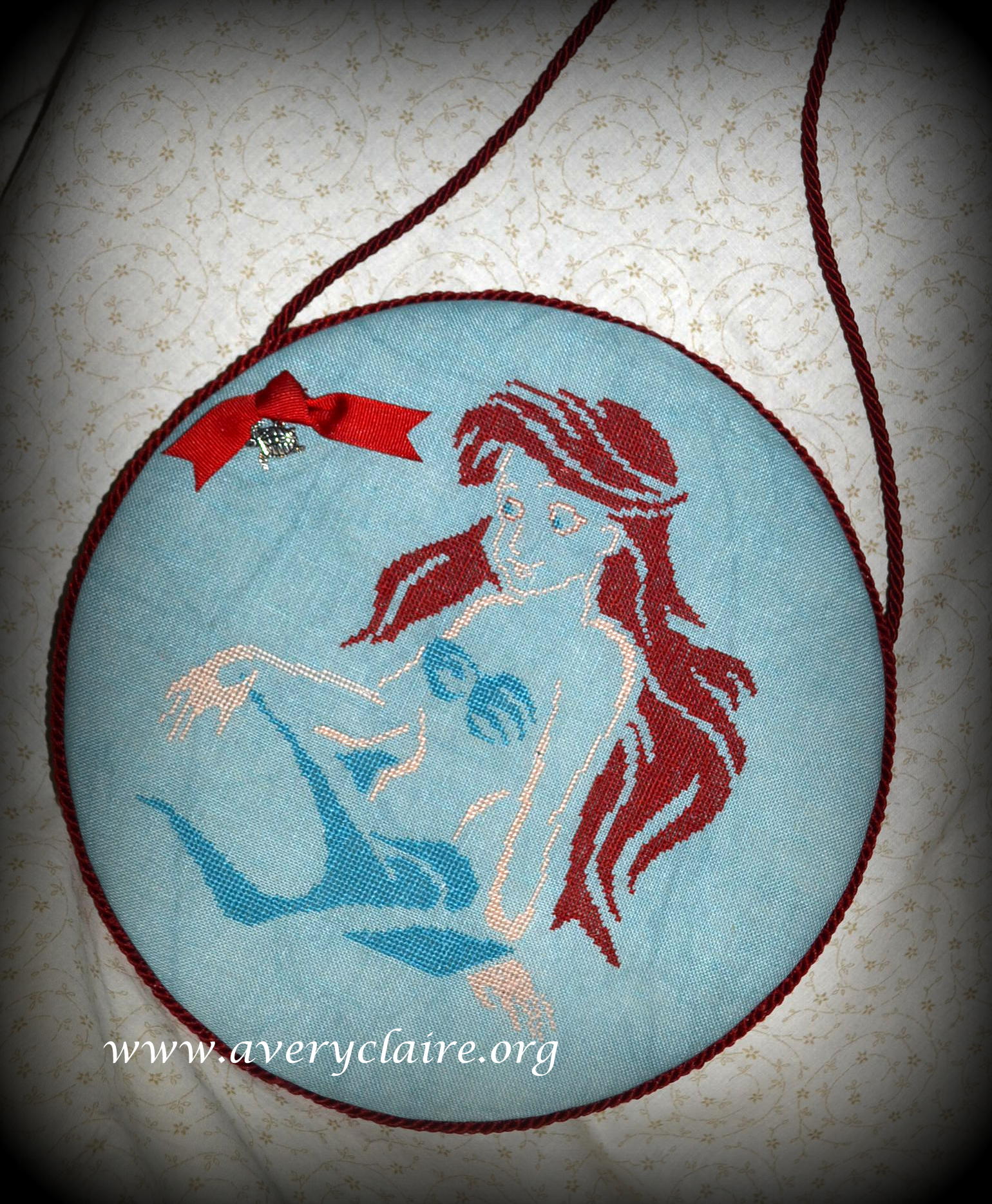 The next she did is this Sailboat Ornament. It’s very elegant with the rayon floss I used for cording and is perfect with the “sea” themed backing I had in my stash.