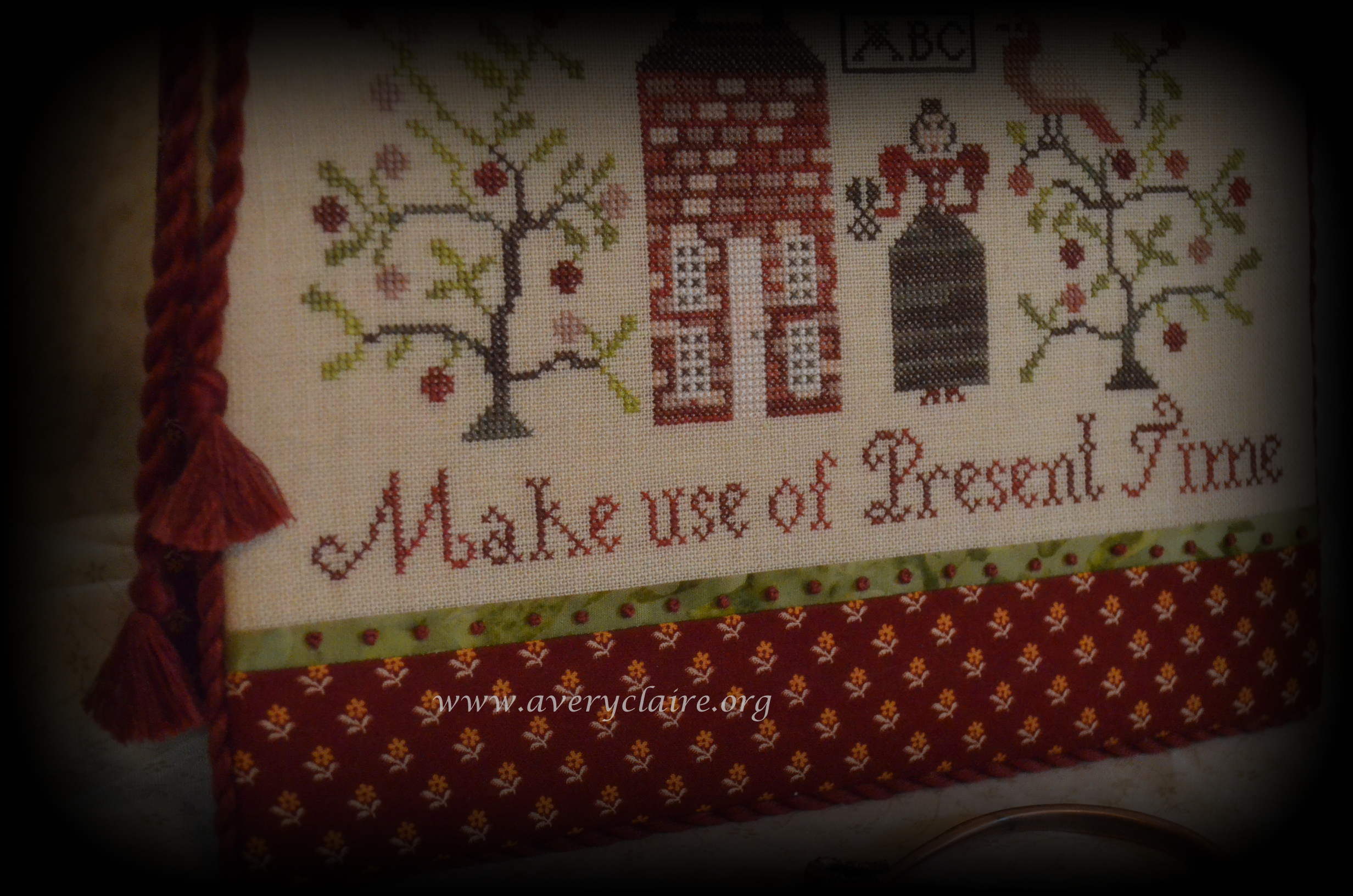 Candice was busy with these beautiful pieces from the Plum Street Serial Bowl Collection. On the first flat fold I added some little buttons across the bottom and on the second flat fold some french knots did the trick. It’s so nice to have flat folds that can be folded up and put away so you can change up your cross-stitch displays often.